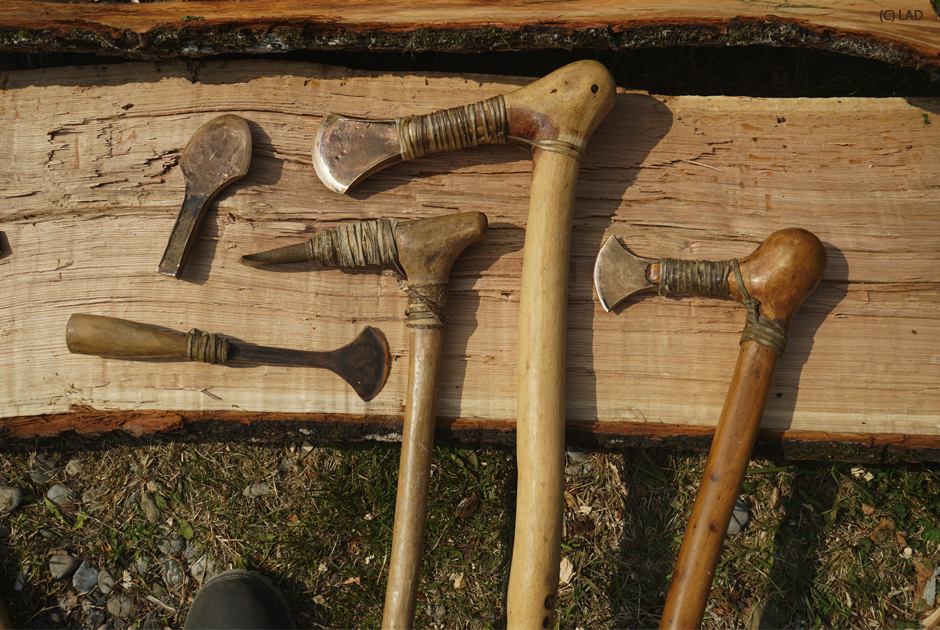 Ein vollständig erhaltener spätbronzezeitlicher, etwa 1050 bis 850 vor Christus, Einbaum aus der Wasserburg Buchau, Stadt Bad Buchau, wurde als Vorbild für den experimentellen Nachbau gewählt. Mit originalgetreu nachgebauten Werkzeugen wurde ein zuvor grob zugerichteter Einbaum aus Pappelholz fertiggestellt. Zudem wurden an mehreren prähistorisch häufig genutzten Holzarten wie Eiche, Linde, Esche und Buche mit verschiedenen Werkzeugen systematisch Versuche durchgeführt und wissenschaftlich dokumentiert. Die Vergleichssammlung soll später bei der Auswertung der originalen Funde aus archäologischen Fundstellen unterstützen.